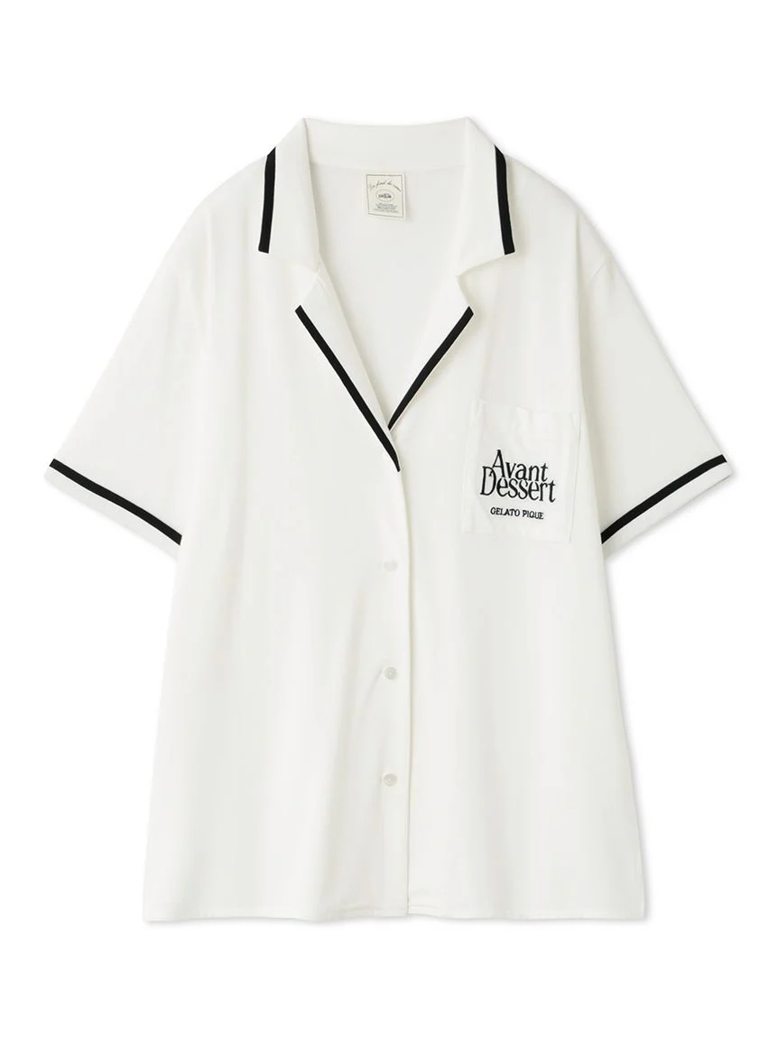 The front pocket is elegantly embroidered with the "Avant Dessert" logo, adding a touch of luxury and identity to the minimalist design. The shirt's contrast piping along the collar, pocket, and sleeves adds a modern, sophisticated touch to its overall look, making it versatile enough for both sleep and casual wear around the home. The relaxed fit ensures freedom of movement, while the smooth fabric caresses the skin, enhancing your comfort during wear. Available in two classic colors, black and white, this shirt is easy to care for and is durable enough for regular use, making it a valuable addition to any loungewear collection.