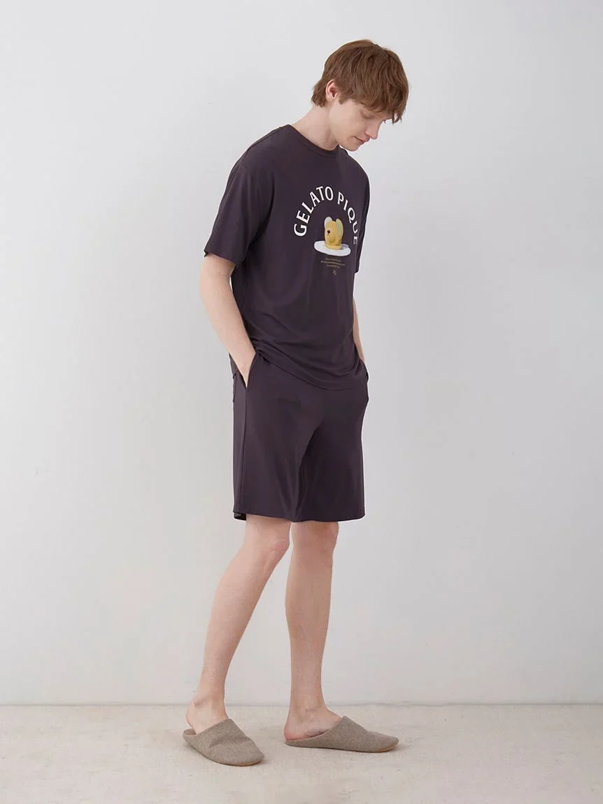 Charming Comfort: Gelato Pique Men's Rayon Logo Motif Lounge Shorts